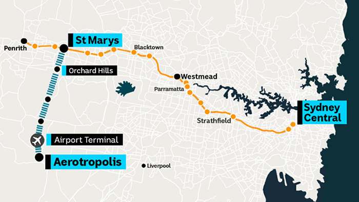 新增的23公里地铁线路将从St Marys车站延伸至五个新车站,其中两个位于西悉尼国际机场。