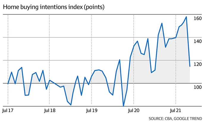 CBA房屋购买意愿指数的下降,与银行住房贷款申请水平的下降以及与购房相关的谷歌搜索量的下降同时发生。