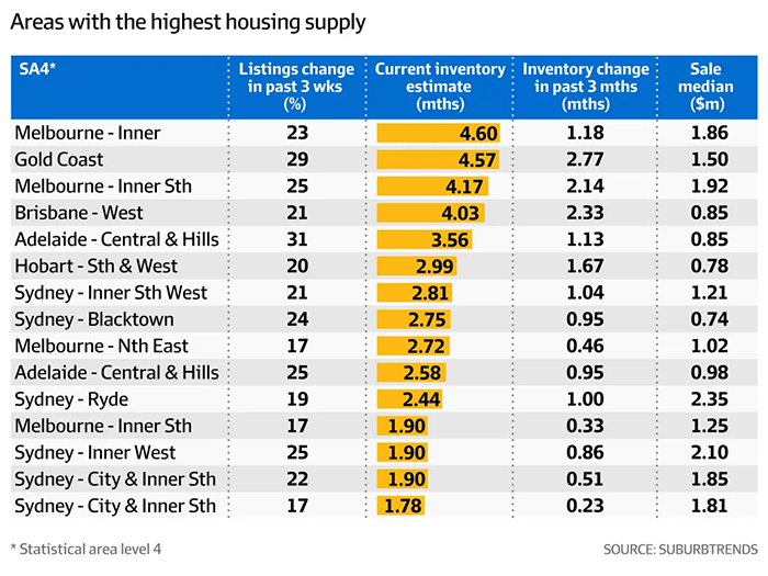 据Suburbtrends的数据显示,墨尔本市中心Stonnington West的挂牌房源数量在过去三周内上升23%,而与平均水平相比,Stonnington East的市场待售房屋存量增加了一倍多。