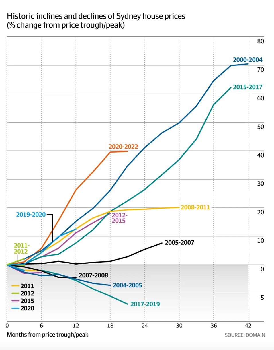 Domain最近的一项分析观察了悉尼市场周期的持续时间,发现低迷期的持续时间(以月为单位)少于之前上升期的一半。