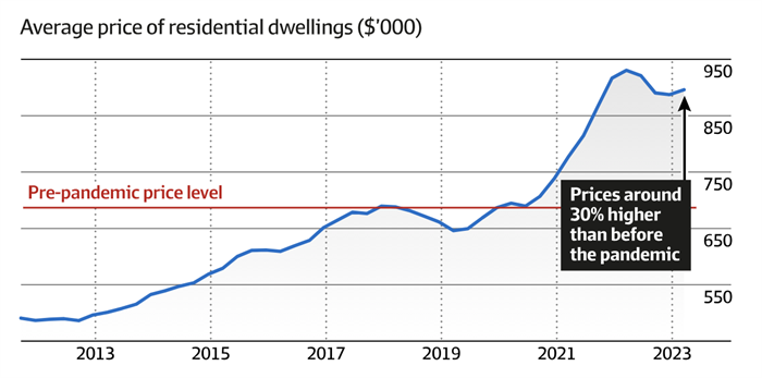 该组织表示,在2020年1月之前的10年里,CoreLogic租金价值指数的全国平均涨幅约为2.1%,但在2022年12月达到10.2%的历史新高。